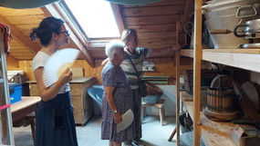 Nach einer herzlichen Begrüßung durch den Heimatpfleger Hr. Michael Müller und Hr. Dr. Kunze gaben sie uns in dem ehemaligen Stadel, der zu einem gemütlichen Veranstaltungsraum ausgebaut wurde, Einblicke in die Geschichte des Hofes und seine ehemaligen Bewohner. Bei den anschließenden Führungen, für die wir in kleine Gruppen aufgeteilt wurden, vermittelte das Museum Eindrücke über das karge Leben von Kleinbauern im Hachinger Tal um 1800. Zu unserer Überraschung verwöhnte uns Frau Müller mit Kaffee und köstlichen Kuchen, bis alle Führungen beendet waren und wir uns vor dem alten Bauernhaus für ein Gruppenfoto aufstellten. Für diesen wunderbaren Museumsbesuch bedankten wir uns herzlich bei den Gastgebern.